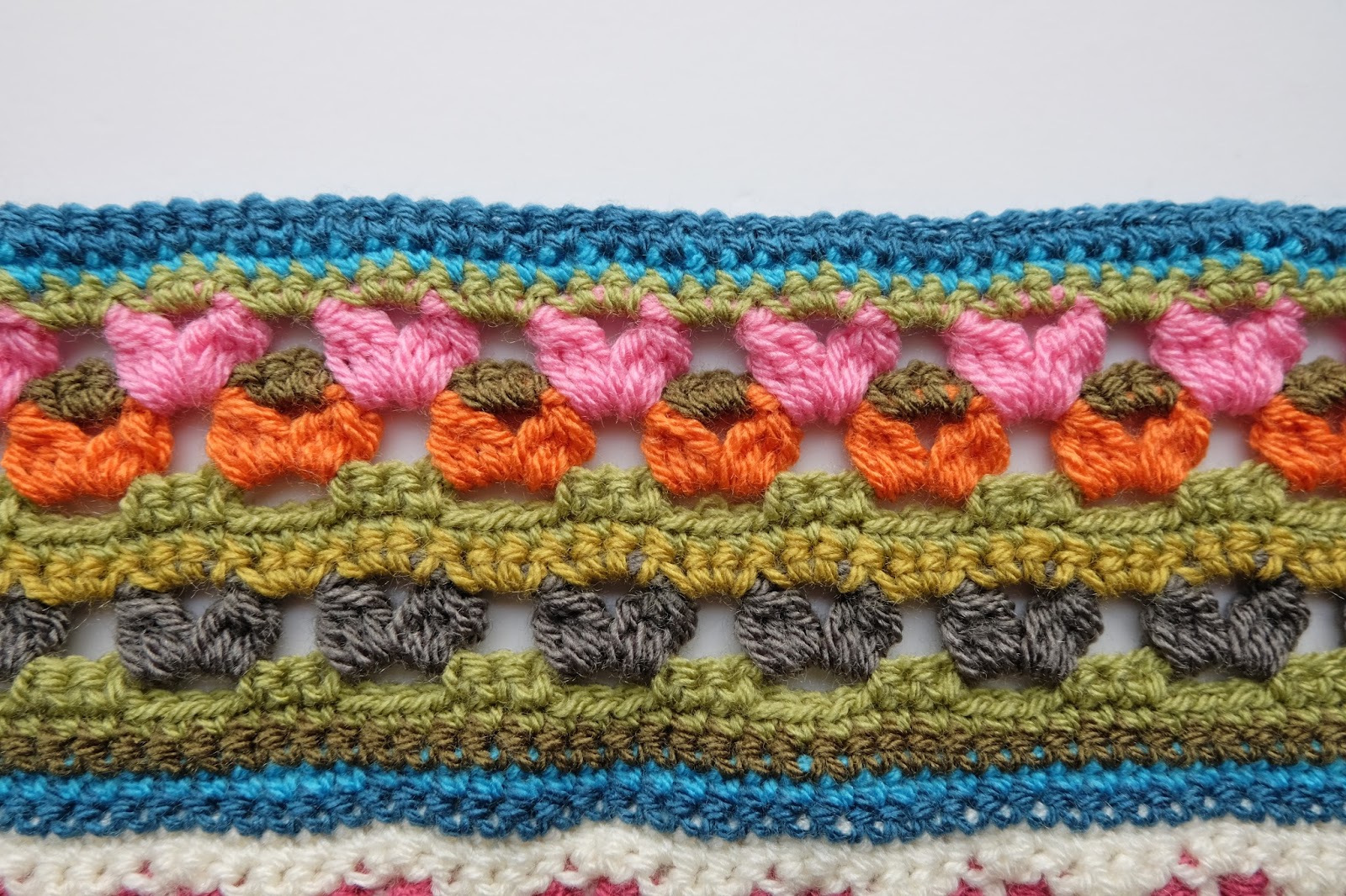 the blanket patterns I have referred to the yarn shade swaps between the original Special DK version and the Yarn Stories Fine Merino version. In all but one case (for the heart shapes in February) the yarn swaps have stayed consistently the same, however, for the edging the swaps are not the same as previously and have been based on left over yarn amounts.